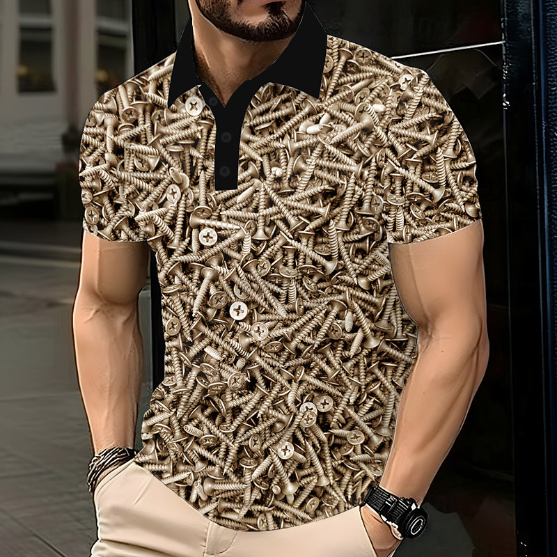 Men's Rivet Polo Short Sleeve Polo Shirts Lapel Casual Athleisure Daily Wear 3D Print Buttons Summer Blue Brown Gray