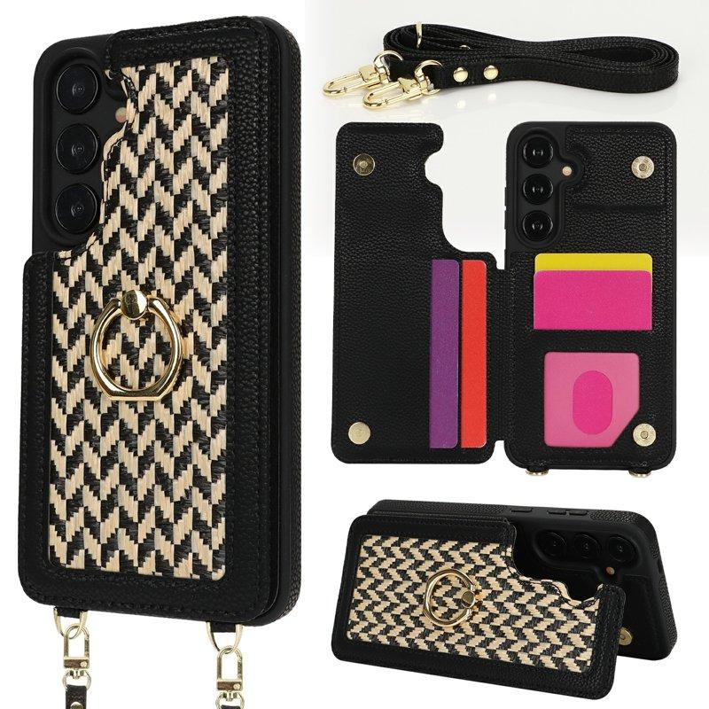 telefono Custodia Per Samsung Galaxy S26 Ultra Plus S25 S24 S23 S22 Plus Ultra S23 FE A55 5G A35 5G A25 A15 Copertura Posteriore Supporto ad anello con Cordino Slot per Carte Retrò TPU Metallo Pelle