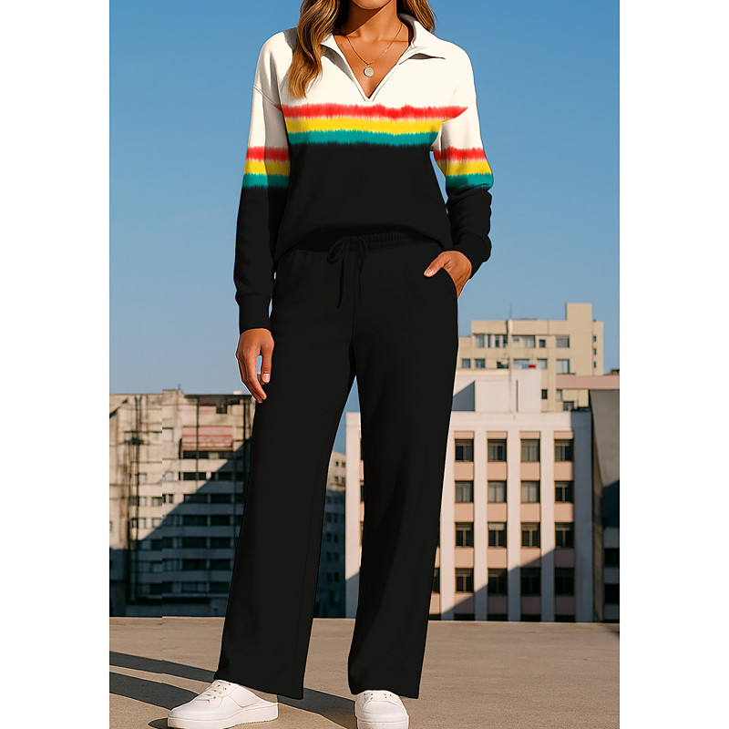 Women's Tracksuit Sweatpants Pullover Sweatshirt Zipper Pocket Color Block Clothing Suit Fall Black White Workout Athleisure Running Thermal Warm Windproof Long Sleeve Sport Activewear Stretchy
