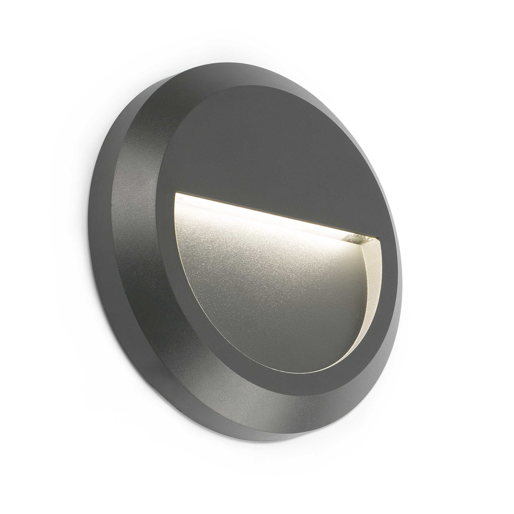 Faro Grant - applique murale - Ø 15 x 2,5 cm - 1W LED inclus - IP65 - gris foncé