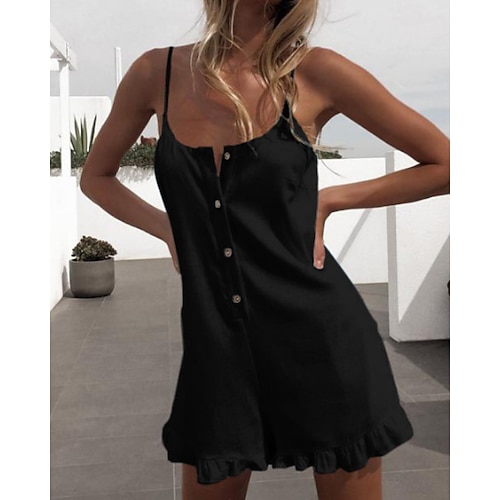 Per donna Normale Pantaloni ispirati al lino Streetwear Tinta unica Senza Maniche Collo a U Volant Bottoni Streetwear Quotidiano Vestibilità regolare Nero Bianco Rosso Estate