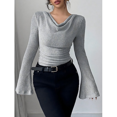 Per donna Blusa Tinta unica Elegante Essenziale Casual Manica Lunga Scollo a Cascata Top Regolari Quotidiano Arricciato Nero Vino Verde Cachi Grigio Primavera Autunno Inverno