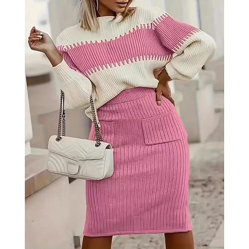 Per donna Elegante Attivo Streetwear Set di gonne Bolero Top Manica Lunga Girocollo Tinta unica Patchwork All'aperto Vacanza Quotidiano Nero Rosa Rosso Autunno Vestibilità regolare