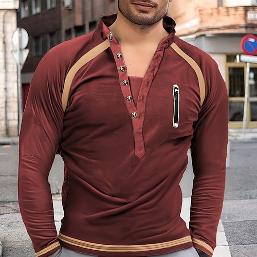 Per uomo Maglia Vino Blu Cachi Grigio chiaro Grigio scuro Colletto Mao Blocco di colori Patchwork Sport Outdoor Quotidiano Ferie Cotone Streetwear Essenziale Casual Autunno Inverno Abbigliamento