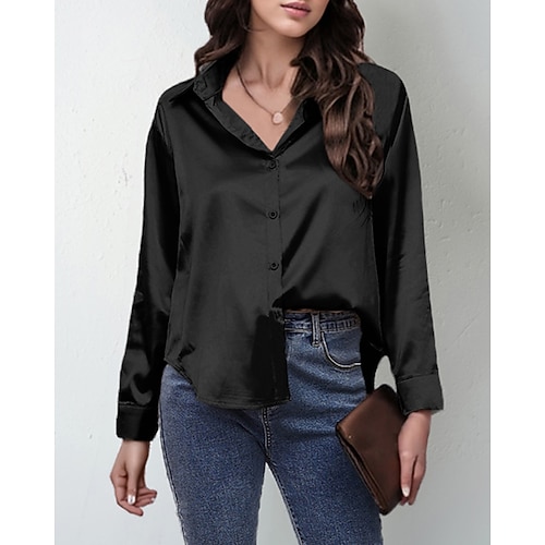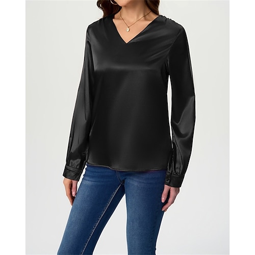 Per donna Camicia Elegant Elegante Raso/Satin Tinta unica Elegante Casual Manica Lunga Scollo a V Top Regolari Quotidiano Uscire Nero Bianco Vino Blu Reale Verde Primavera Autunno