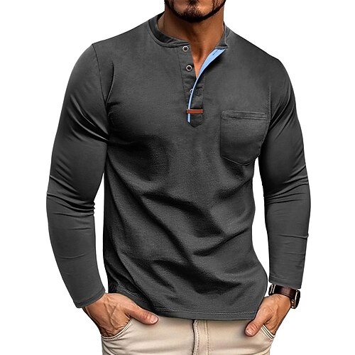 Per uomo Maglietta Maglia Henley Camicia a Maniche Lunghe Manica Lunga Henley Primavera Autunno Semplice Moda Designer Essenziale Tasche Bottoni Vacanza Streetwear Uscire Nero Bianco Vino Maglietta
