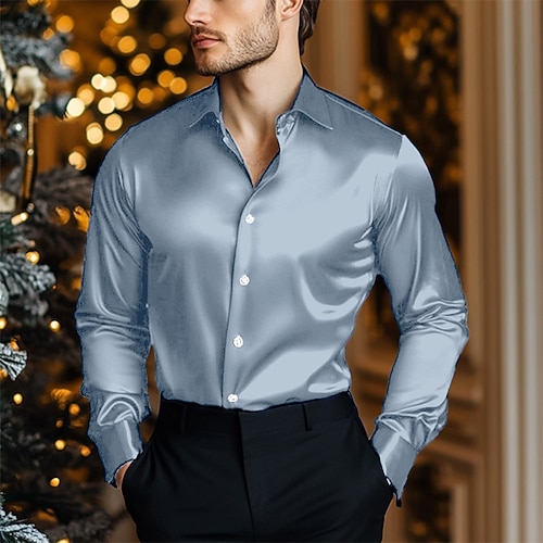 Per uomo Camicia Camicia in raso Camicia casual Camicia con Bottoni Semplice Matrimonio Vacanza Blu chiaro Nero Vino Blu reale Manica Lunga Bavero Primavera Autunno Abbigliamento