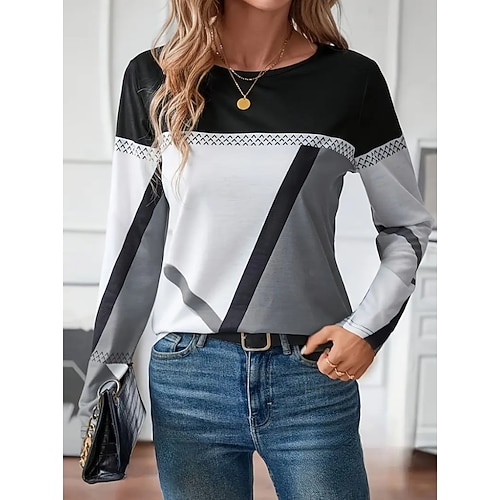 T-shirt da donna con maniche lunghe girocollo maniche lunghe tunica moderna casual stampa geometrica tops regolari quotidiani vino marrone chiaro blu arancione marrone autunno inverno pre-autunno