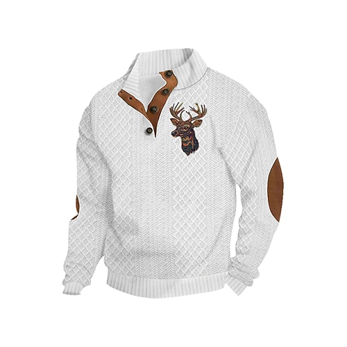Per uomo Maglia Nero Bianco Vino Blu marino Blu Colletto Mao Renna Jacquard Patchwork Quotidiano Ferie Uscire Poliestere Streetwear Casual Autunno Inverno Abbigliamento Felpe con cappuccio Felpe