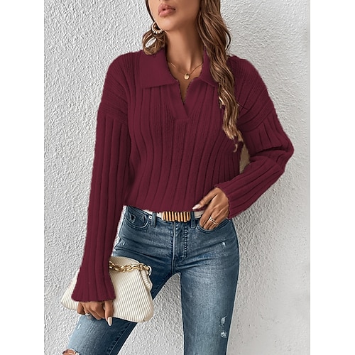 Per uomo Maglia Nero Vino Blu marino Verde scuro Cachi Girocollo A righe A coste Testurizzato Trama a maglia Sport Outdoor Quotidiano Ferie Poliestere Streetwear Essenziale Casual Primavera Autunno
