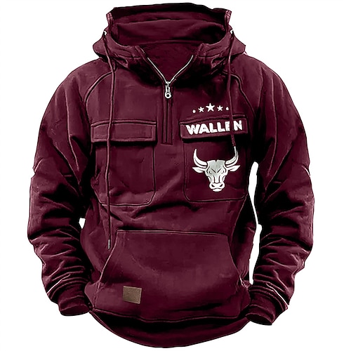 Per uomo Felpa con cappuccio Felpa con cappuccio e zip corta Nero Rosa Vino Blu Verde Con Cappuccio Mucca Coulisse Tasca Sport Outdoor Quotidiano Ferie Streetwear Essenziale Casual Primavera Autunno