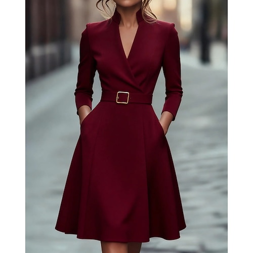 Per donna Mini Abito Abito nero Tubino Elegante Moda Moderno Quotidiano Ufficio Ferie Vestibilità regolare Semplice Manica Lunga Scollo a V Nero Bianco Vino Blu scuro Primavera Autunno Inverno