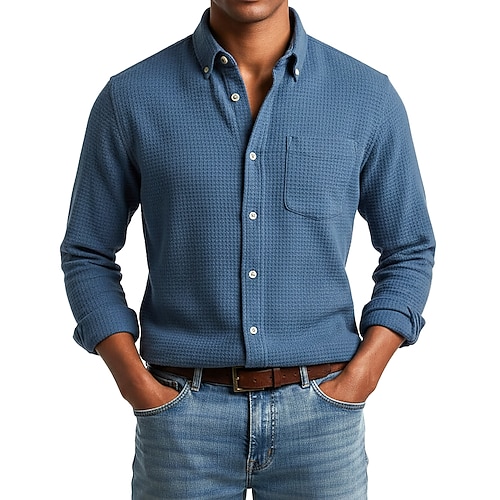 Per uomo Camicia Camicia a nido d'ape Camicia casual Camicia con colletto alla coreana Camicia con Bottoni Blu Rosa Vino Blu marino Manica Lunga Semplice Testurizzato Collo alla coreana Casuale