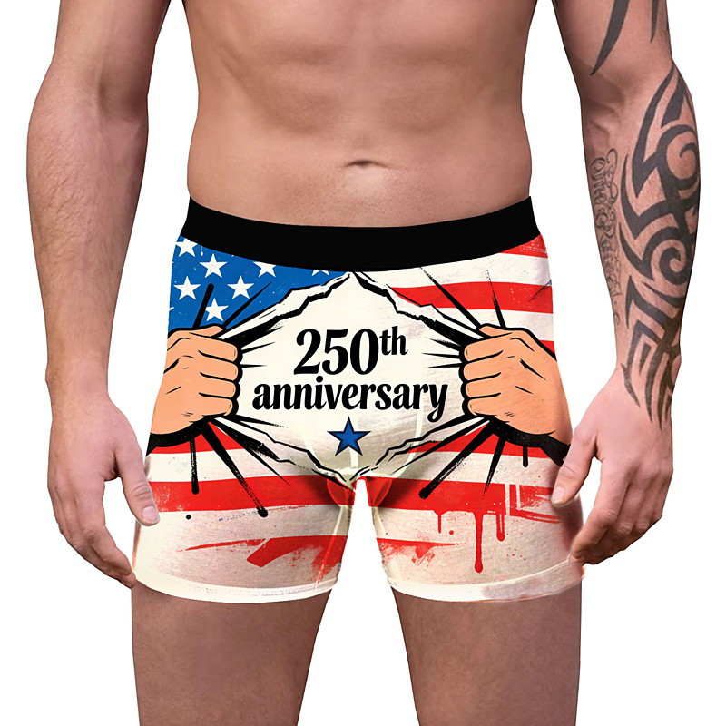 American 250 2026 USA Flag Carnival Boxer Briefs Underwear Novelty Funny Adults' Men's Independence Day / the Fourth of July 4th of July Casual Party Easy Carnival Costume Dress Up
