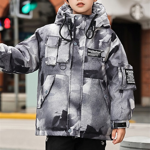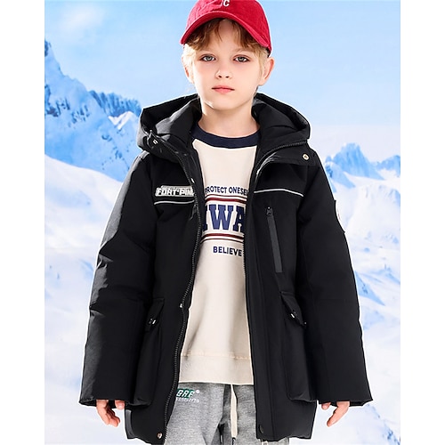 Bambini Ragazzi Giacca in piuma Giacca con Cappuccio Giacca Imbottita Capispalla Grafico Manica Lunga Tasca Tenere al caldo Antivento Cappotto Casuale Quotidiano Essenziale Nero Bianco Marrone