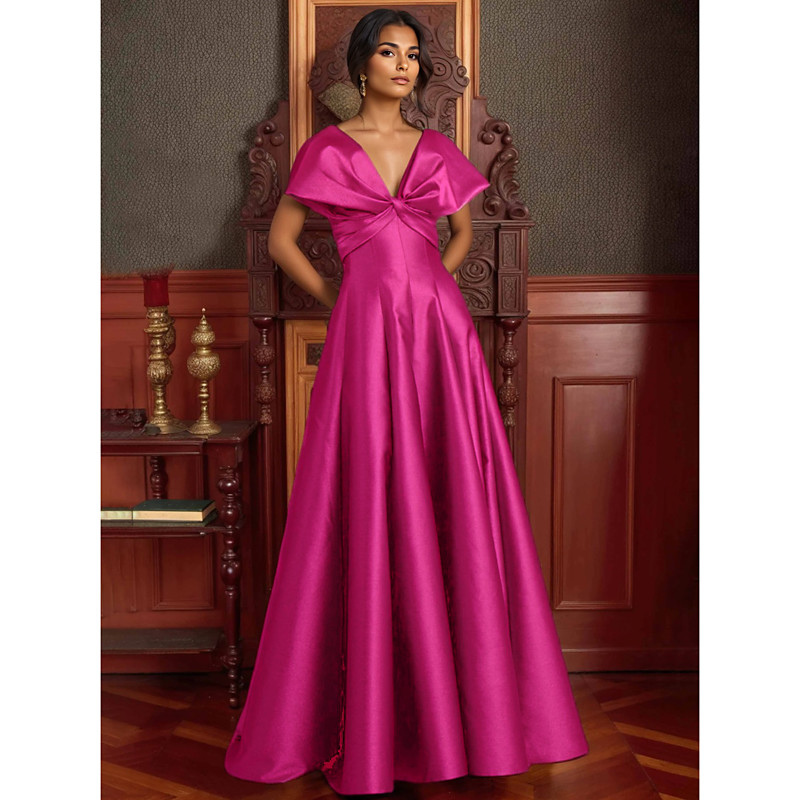 A-Line Floor Length Prom Dresses Evening Gown Ball Gown Formal Dress Elegant Sleeveless V Neck Garden Party Wedding Stretch Satin with Pocket