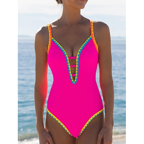Per donna Costumi da bagno Intero Monokini Costume da bagno Arricciato Controllo della Pancia Vita alta Senza schiena Vacanza Abbigliamento da Spiaggia Tinta unica Scollo a V Senza Maniche Costumi da