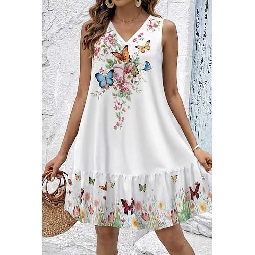 Pasqua Per donna Mini Abito Vestito Estivo Abito a trapezio Abito Estivo Casual Quotidiano Ferie Vestibilità comoda Floreale Grafico Farfalla Senza Maniche Scollo a V Bianco Estate Primavera