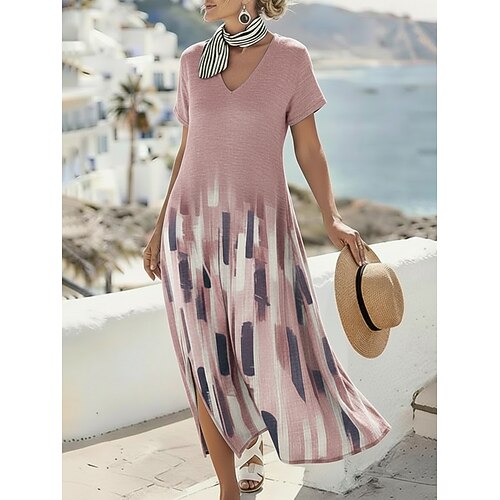 Per donna Abito Midi Vestito Casual Abito a trapezio Abito Stampato Moda Moderno All'aperto Vacanza Weekend Vestibilità comoda Ombre Geometrico Manica Corta Scollo a V Blu Rosa polveroso Rosa Viola