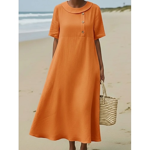 Per donna Abito Midi Vestito Estivo Abito a trapezio Abito Estivo Vacanza Casual Boho Spiaggia Ferie Abito Estivo Vestibilità comoda Semplice Manica Corta Bavero Bianco Arancione Verde Estate