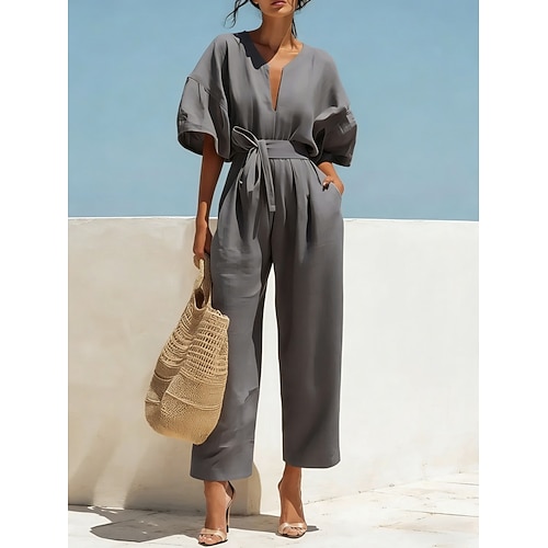 Per donna Normale Tuta Attivo Tinta unica Manica 3/4 Gamba larga Scollo a V Allacciato Tasca Quotidiano Vacanza Vestibilità comoda Blu Nero Bianco Estate