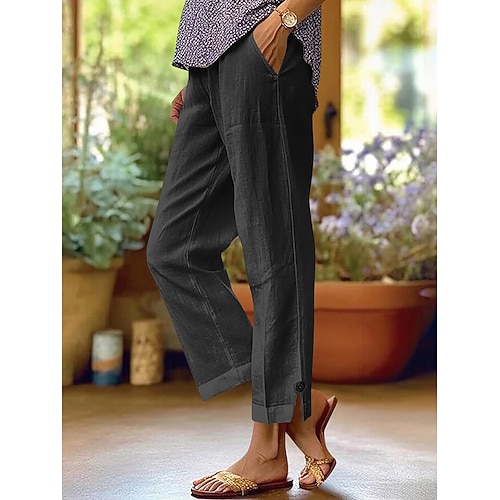 Per donna Misto cotone Finto cotone e lino Chinos Pantaloni Estivi Casual Lunghezza alla caviglia Naturale Tinta unita Inelastico Blu Verde translucido Nero Bianco Estate Autunno Vestibilità comoda