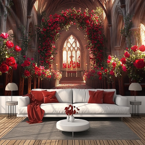 Decorazioni per matrimoni Sfondo Fotografia Appendi Wall Grande Tappeto Arte Muro Decor Coperta Tenda Casa Camera da letto Sala Decorazione Rose Cuore