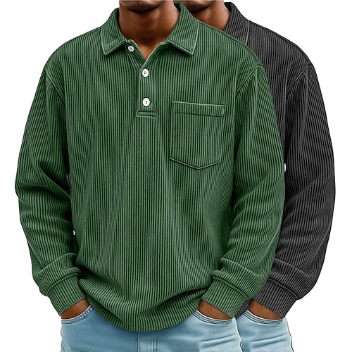 Per uomo Camicia di Velluto a Coste Testurizzato Casuale Sportivo Bavero Manica Lunga Moda Essenziale Blocco di colori 2 Pezzi Caldo Autunno Primavera Autunno Tutte le stagioni Vestibilità regolare