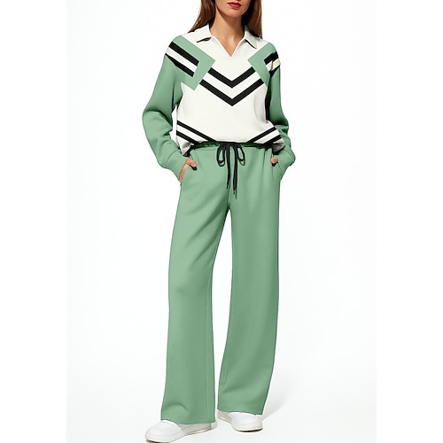 Per donna Maglia Tuta da Ginnastica Tuta da 2 pezzi Coulisse Tasca Geometrico Felpa e pantaloni Completo Abbigliamento Autunno Nero Verde Lavoro All'aperto Viaggio Leggero Di tendenza Manica Lunga