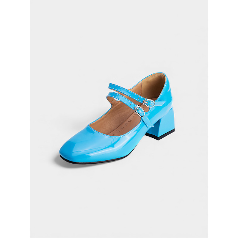 Women's Purple Patent Faux Leather Mary Jane Heels with Double Buckles – Fun Carnival Style, Perfect for Festive Celebrations and Parades