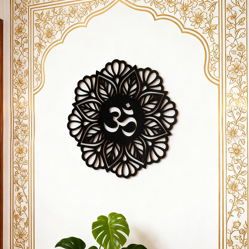 Ramadan Eid Wooden Wall Art – Black Laser-Cut Floral Leaf Hanging Decor, Vintage Pattern Eid Ornament for Ramadan Eid al-Adha, Perfect Home Wall Decoration and Festive Atmosphere Display