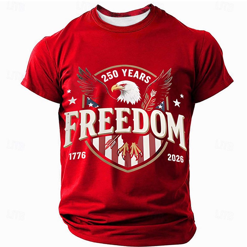 America's 250th Anniversary Men's American US Flag Eagle T Shirt Short Sleeve T shirt 3D Print Crew Neck Shirt Daily Military Daily Street Blue Black Red Summer Spring Clothing Apparel S M L XL XXL