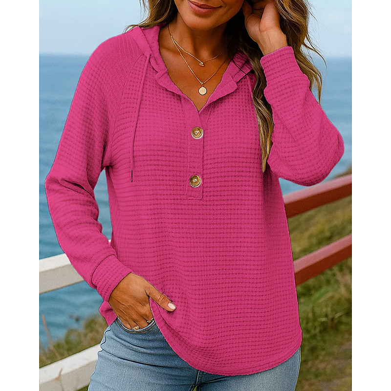 Women's Casual Tops Pullover Hoodie Buttons Long Sleeve Top Athleisure Fall Solid Colored Outdoor Travel Sports Sportswear Activewear Black Pink Blue
