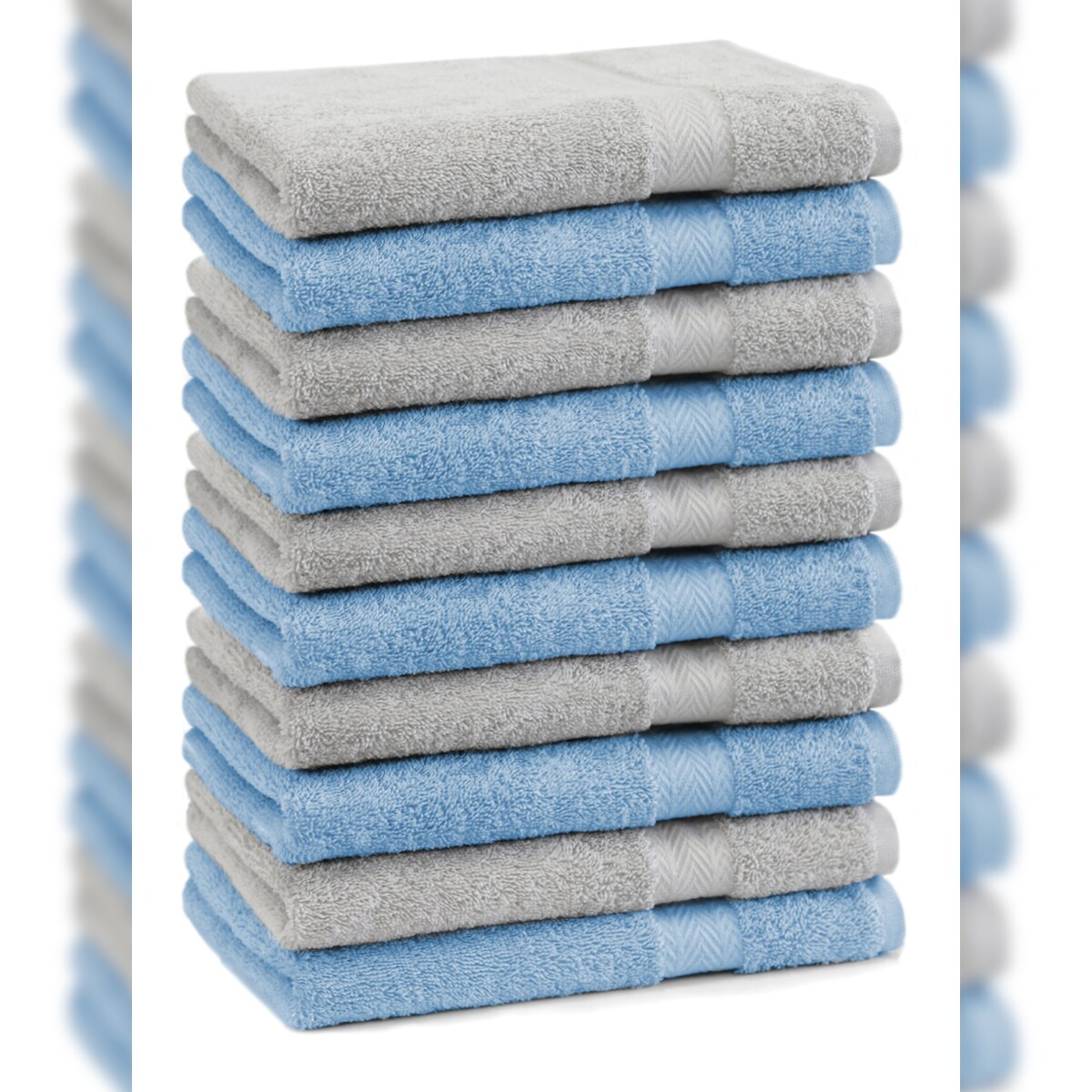Betz 10 Stück Gästehandtücher PREMIUM 100%Baumwolle Gästetuch-Set 30x50 cm Farbe hellblau und silbergrau