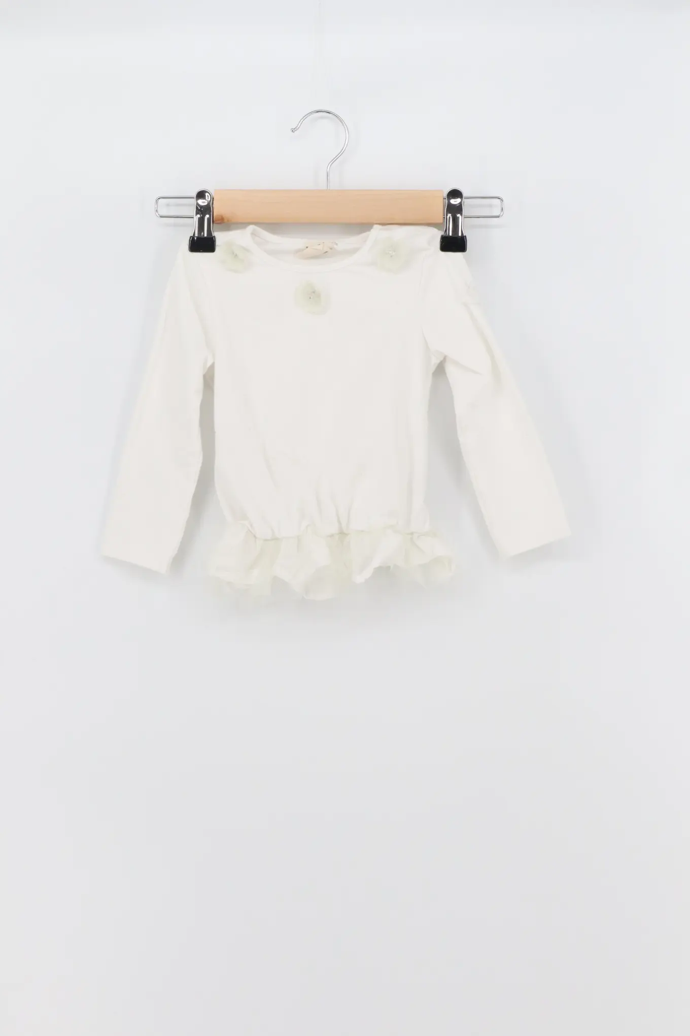 JOTTUM Langarmshirt Weiß Rüschen Kinder Gr. 80 Baumwolle