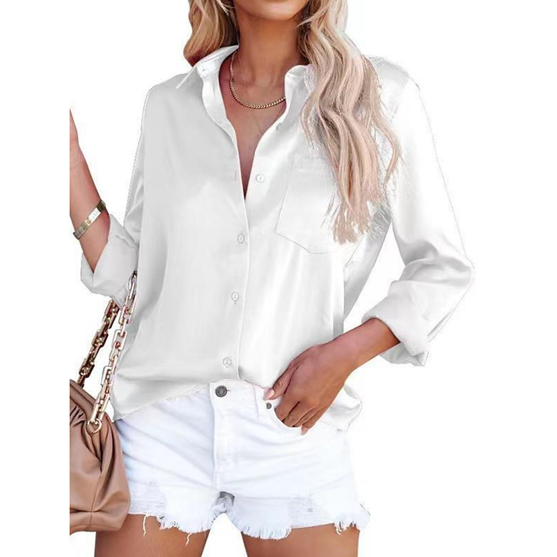 Women's Shirt Blouse Plain Vintage Stylish Short Sleeve Shirt Collar Regular Tops Daily Holiday Going out Pocket Buttons Black White Pink Orange Gray Summer Spring