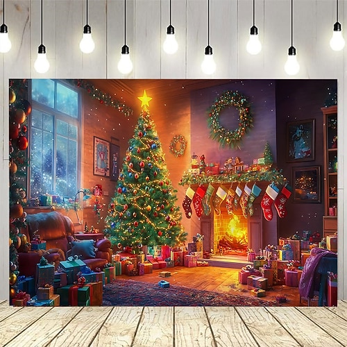 camino di Natale arazzo con scena di finestra, grande decorazione murale da appendere alla parete, tessuto per sfondo fotografico, arredamento per la casa per camera da letto, soggiorno o ufficio