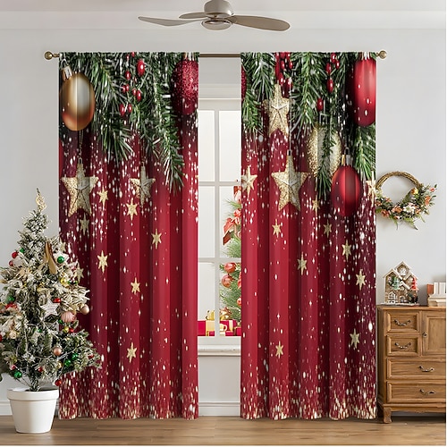 Tende con motivi natalizi, stampa digitale 3D, tende ad alta precisione per soggiorno, camera da letto, decorazioni natalizie, set di tende per la casa in tessuto morbido