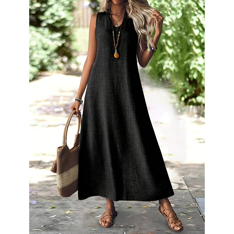 Women's Maxi Dress A Line Dress Summer Dress Casual Daily Loose Fit Plain Sleeveless V Neck Black Red Blue Apricot Summer
