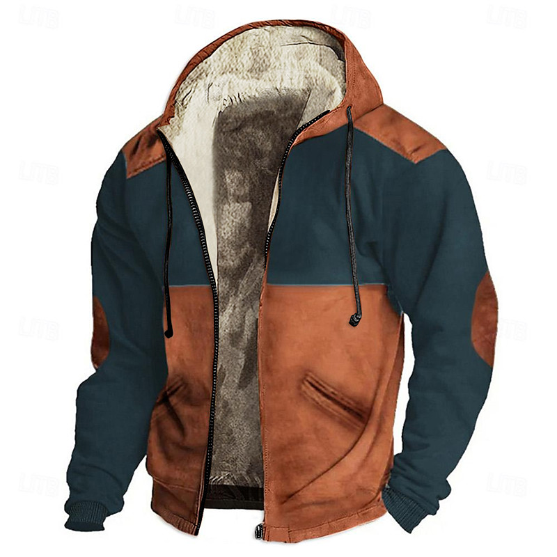 Men's Full Zip Hoodie Hoodie Jacket Zip Up Hoodie Sweat Jacket Fuzzy Sherpa Light Khaki. Dark Green Orange Khaki Hooded Color Block Zip Up Sports Outdoor Daily Holiday Polyester Streetwear Cool