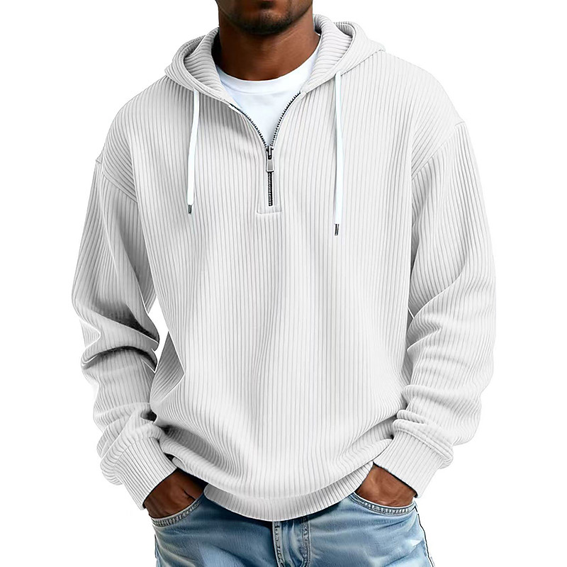 Men's Hoodie Corduroy Pullover Hoodie Sweatshirt Quarter Zip Hoodie Apricot Wine Red Black White Light Green Hooded Plain Zipper Textured Casual Daily Sports Outdoor Polyester Streetwear Cool