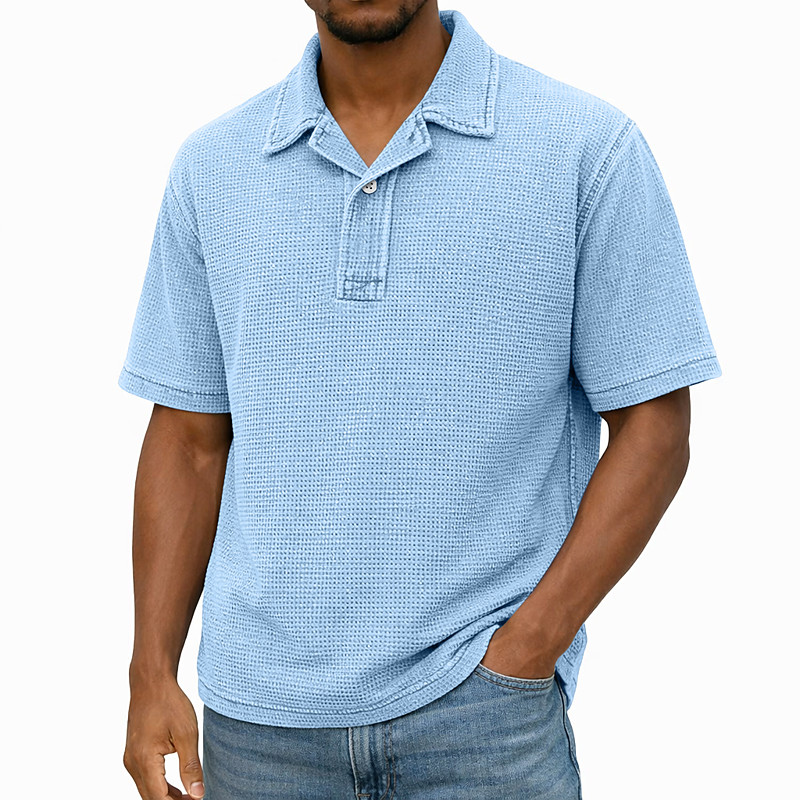 Men's Waffle Polo Shirts Textured Street Casual Polo Collar Classic Short Sleeve Fashion Casual Striped Button Front Button-Down Spring Summer Regular Fit Blue White gray Navy Blue Coffee Light