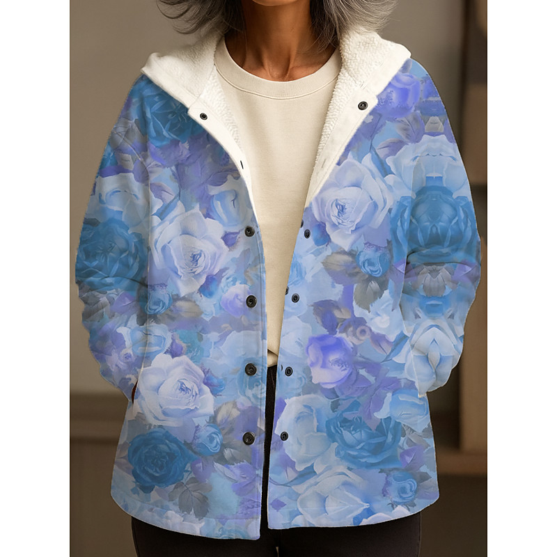Women's Winter Coat Winter Jacket Fleece Lined Warm Quick Dry Buttons Daily Modern Casual Comfortable Floral Vacation Athleisure Daily Hooded Loose Fit Sleeveless Outerwear Light Blue Yellow Pink
