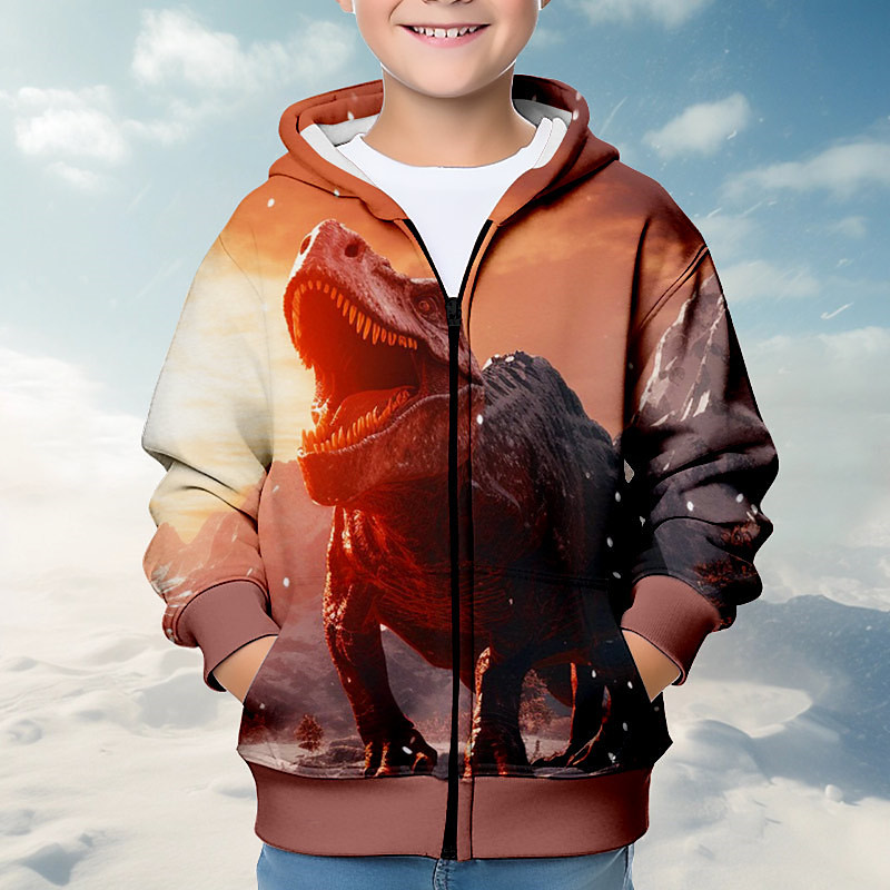 Boys 3D Dinosaur Hoodie Coat Outerwear Long Sleeve 3D Print Fall Winter Fashion Streetwear Cool Kids 3-12 Years Outdoor Casual Daily Regular Fit