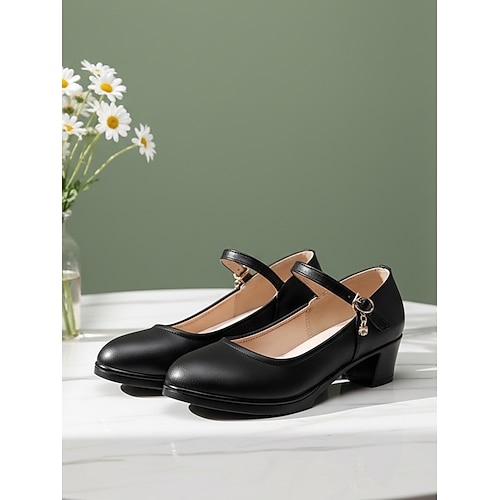 Scarpe basse da donna in similpelle con cinturino a T nero – scarpe da pendolare di ispirazione vintage con dettagli ritagliati per il lavoro e le uscite diurne