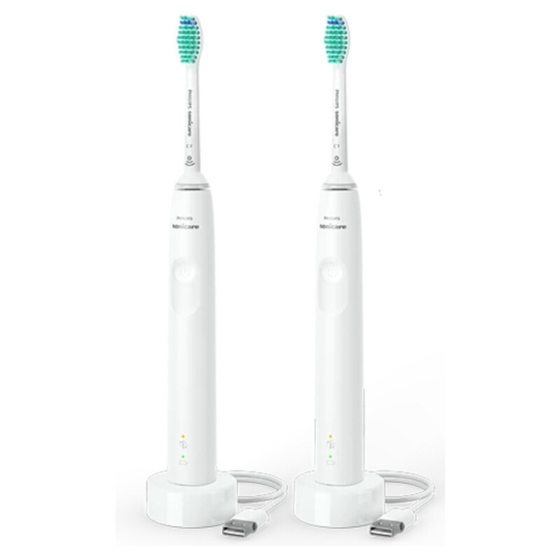 Philips HX367513 - Brosse à dents électrique Sonicare 3100 - Blanc - Pack de 2 - 31 000 vibrations par minute