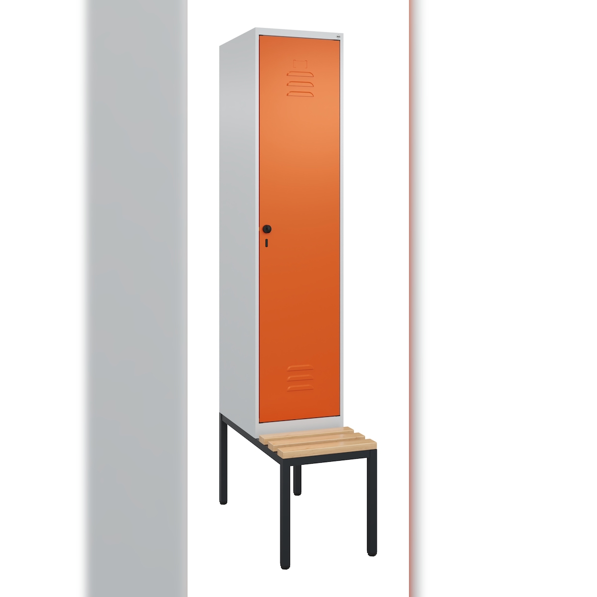 C+P Spind Classic PLUS, Buche untergebaute Sitzbank 1 Abteil, HxBxT 212x40x82cm, Sicherheitsdrehriegel, Hellgrau/Reinorange von PROREGAL