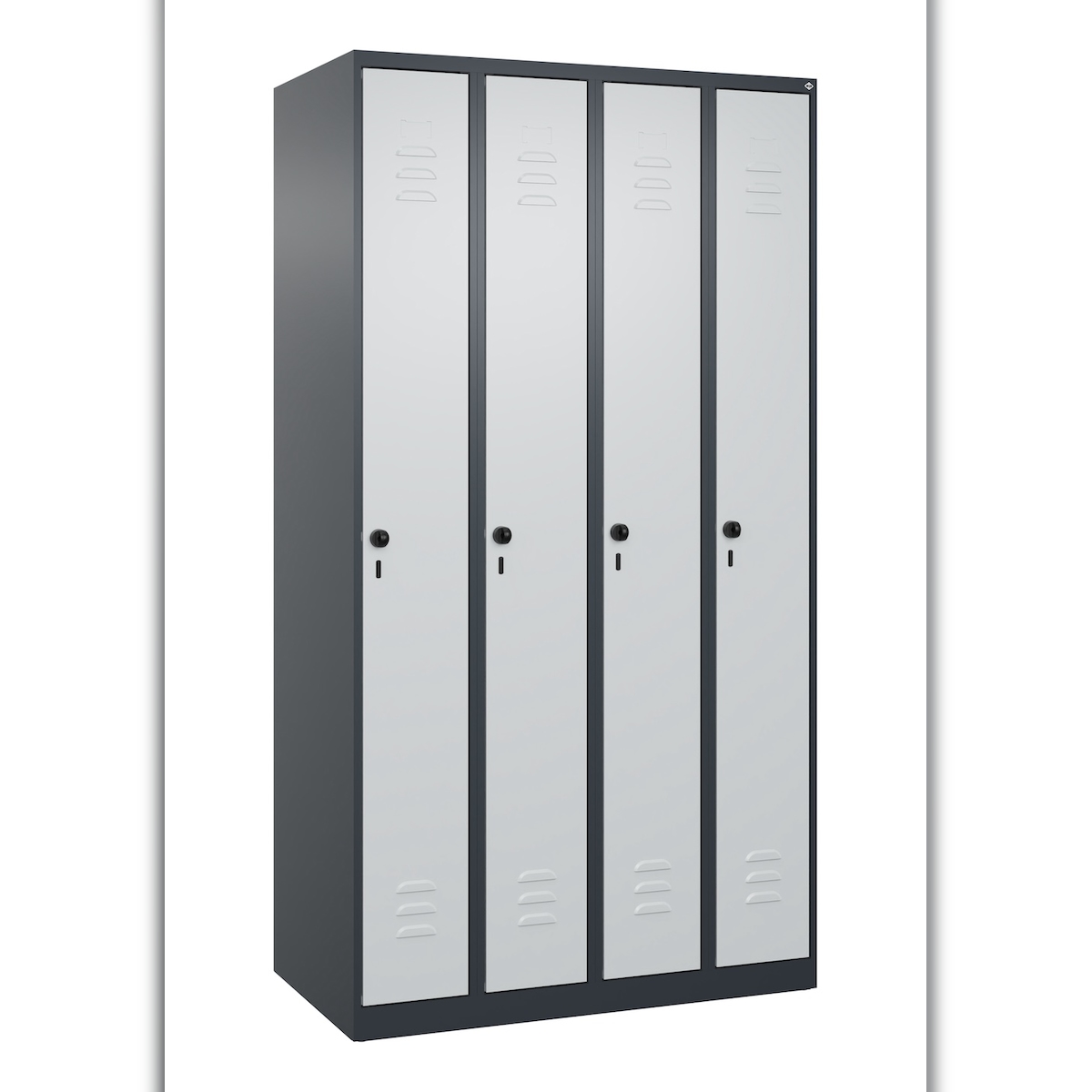 C+P Spind Classic PLUS, 4 Abteile, HxBxT 185x100x50cm, Sicherheitsdrehriegel, Anthrazit/Hellgrau von PROREGAL
