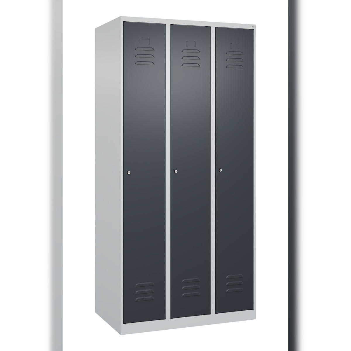 C+P Spind Classic PLUS, 3 Abteile, HxBxT 185x90x50cm, Zylinderschloss, Hellgrau/Anthrazit von PROREGAL