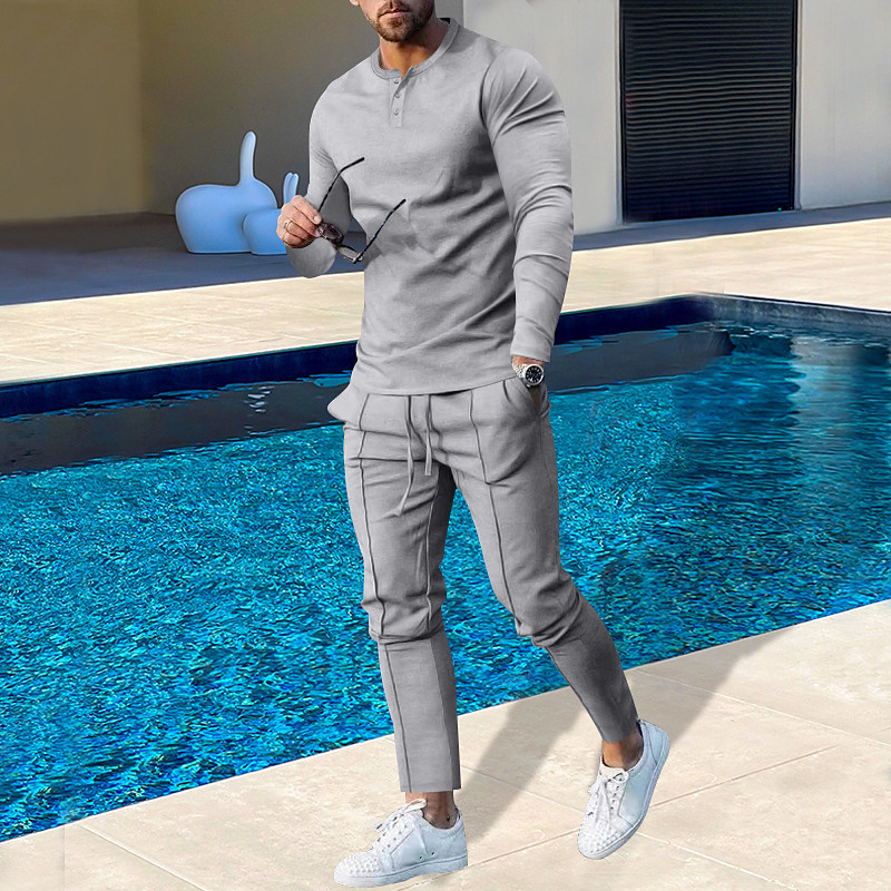 Men's Plain Basic Sweatshirts Sweatshirt Tracksuit Sweatsuit Long Sleeve Sweatshirt Henley Streetwear Basic Casual Sports Outdoor Daily Holiday 2 Piece Spring Fall